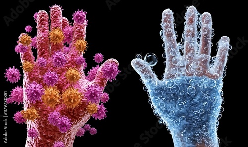 Fototapeta premium Dual perspective illustration of a hand enveloped in vibrant colors,...
