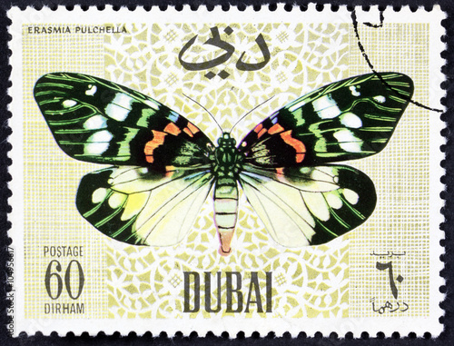 Naklejka premium DUBAI - CIRCA 1968: A stamp printed by Dubai, shows Butterflyv, Circa 1968