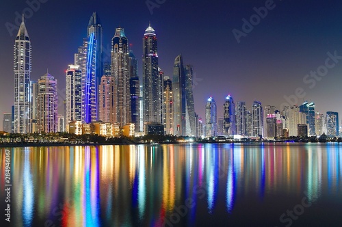 © Abdullah, Fototapeta premium Dubai City , Dubai Marina skyline at night