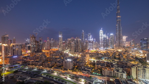 Fototapeta premium Dubai Downtown night to day timelapse with tallest skyscraper and other towers