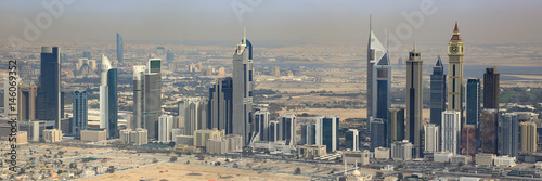 © Markus Mainka, Obraz premium Dubai Emirates Towers Panorama Downtown z lotu ptaka Widok z lotu ptaka
