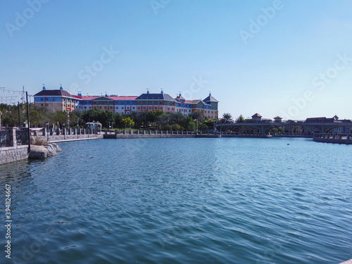 Fototapeta premium Dubai family attractions | Dubai parks and resorts - Riverland French village park | Vintage European city theme