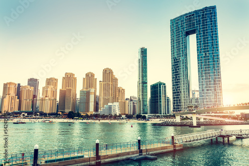 Fototapeta premium Dubai jumeirah beach with marina skyscrapers in UAE