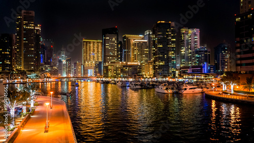 © sablinstanislav, Obraz premium Dubai. Latem 2016 roku. Piękne nocne światła ultranowoczesnej przystani Dubai Marina nad brzegiem Zatoki Perskiej.