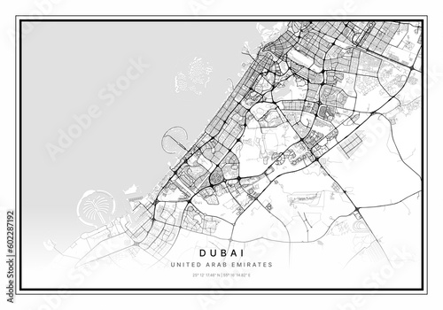 Fototapeta premium Dubai Map, Minimalist Map, Dubai Print, Dubai Poster, Dubai Art, Modern Map...
