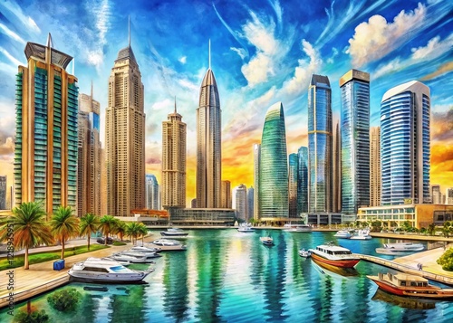 Fototapeta premium Dubai Marina Skyline Panoramic Urban Exploration