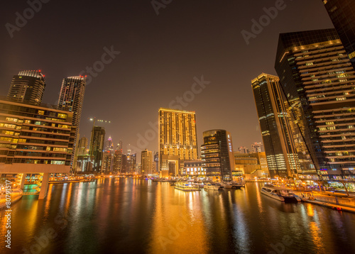 © Elnur, Obraz premium Dubai marina skyscrapers during night hours