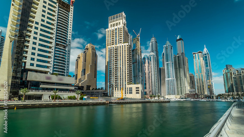 Obraz premium Dubai Marina towers and canal in Dubai timelapse hyperlapse