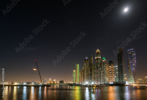Fototapeta premium Dubai Marina waterfront in moonlight. May 2017