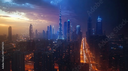 Fototapeta premium Dubai Skyline at Dusk: A City of Lights and Shadows