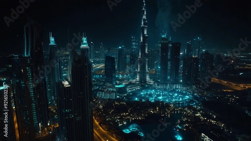 © sadewotito, Obraz premium Dubai Skyline at Night - A City of Lights and Skyscrapers