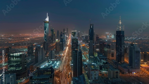 © Mroyek, Obraz premium Dubai Skyline at Night: City Lights and Towers
