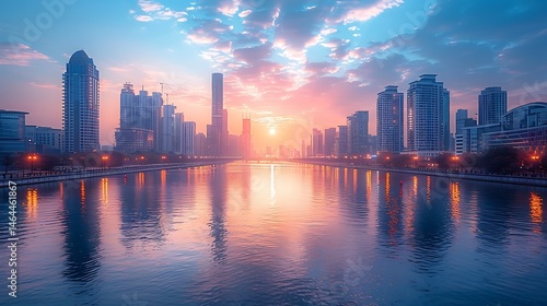 © Biplob, Fototapeta premium Dubai Skyline At Sunrise Over The Canal Water Reflections Photo