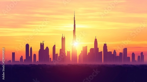 © bat max, Fototapeta premium Dubai Skyline Sunset Silhouette