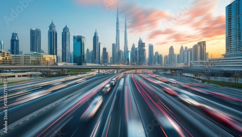 © BISMILAH, Fototapeta premium Dubai Skyline with Traffic