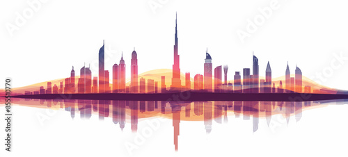 © GoonDuLagoon, Fototapeta premium Dubai UAE city skyline with sleek silhouettes on white background