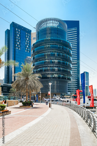 Fototapeta premium Dubai, UAE – october 06, 2025: Dubai Marina, Pier 7, vertical frame