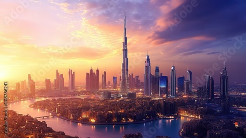 © wicha, Naklejka premium Dubai with a blend of ultra-modern skyscrapers and advanced AI-powered infrastructure.