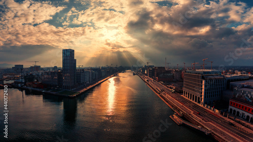 Obraz premium Dublin Ireland - Aerial view of Dublin dockland district with the Capital...