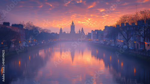 Fototapeta premium Dublin, Ireland city skyline created with Generative AI technology