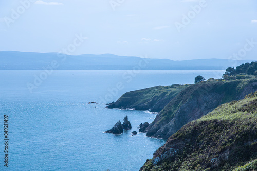 © 江乐 陈, Fototapeta premium Dublin, Ireland - seaside under blue sky and white clouds