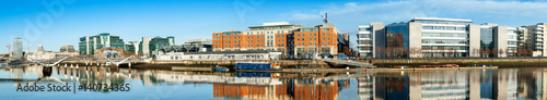 Fototapeta premium Dublin, Irlandia, panoramiczny widok na rzekę Liffey w jasny dzień