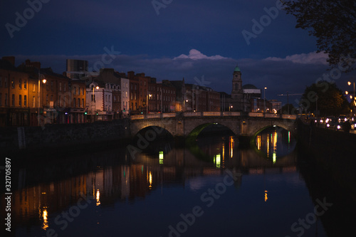 © Andrey, Obraz premium Dublin's night cityscape with bridge over Liffey river