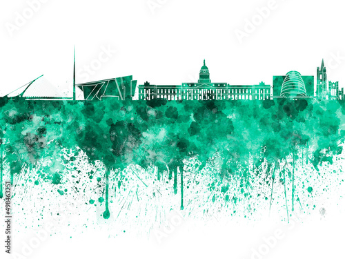 © Paulrommer, Naklejka premium Dublin skyline in watercolor on white background
