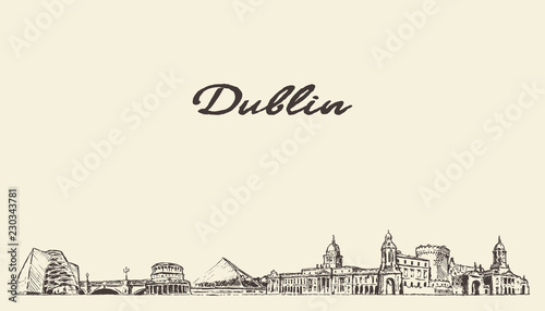 Fototapeta premium Dublin skyline, Ireland vector city drawn sketch