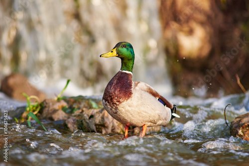 Fototapeta premium duck bathes in a pond