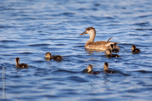 Fototapeta premium Duck family. Nature background. Red crested Pochard.