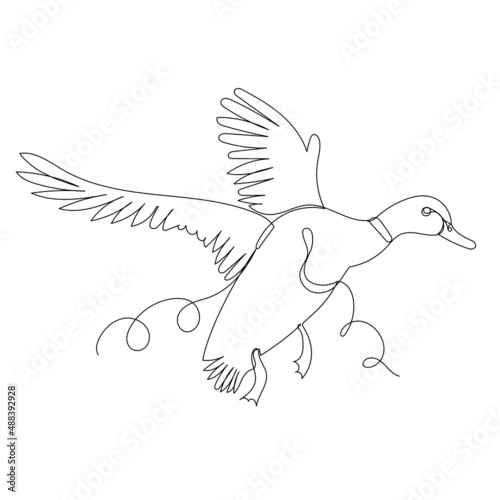 © zolotons, Obraz premium duck flying one line drawing, outline