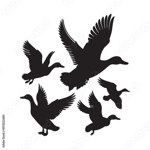 © Never Look Back, Fototapeta premium Duck icon. Duck black silhouette isolated on white background. Vector illustration, Domestic and wild ducks.