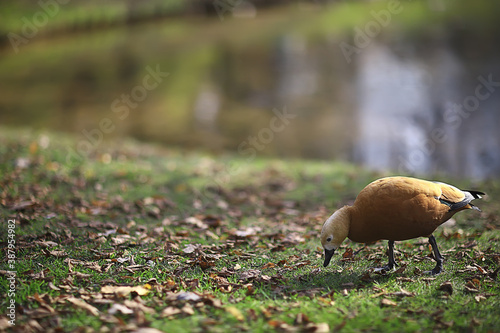 © kichigin19, Obraz premium duck in autumn park, view of abstract relaxation alone