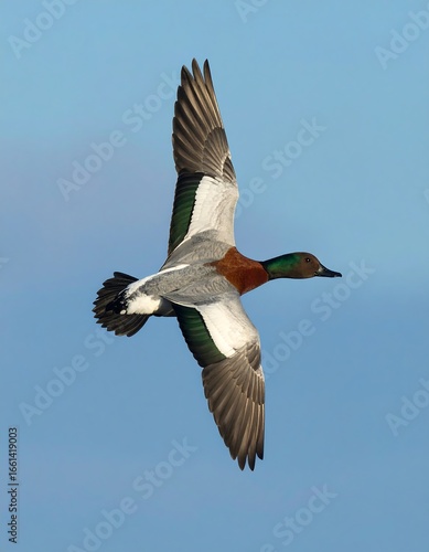 © sela, Obraz premium Duck in flight, clear sky, daytime