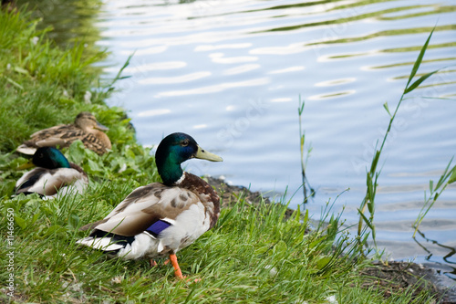 Fototapeta premium Duck male on lake shore