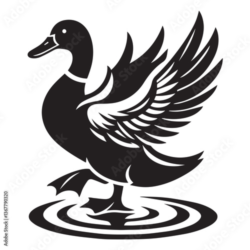 Obraz premium Duck silhouette black and white vector icon