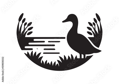 © Bismillah, Fototapeta premium Duck silhouette black vector white background