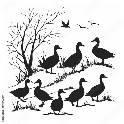 © nillgraph20, Obraz premium Duck silhouette bundle vector design