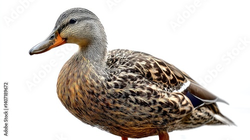 Fototapeta premium Duck Standing Isolated on White Background Bird Portrait