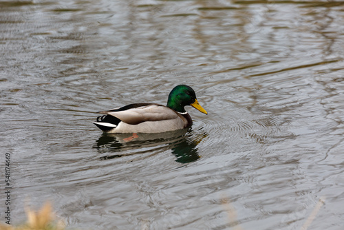 Obraz premium Duck swimming in a river