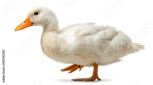 © BONDET LUCKY, Fototapeta premium Duck Walking on White Background Isolated Bird