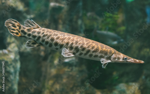 Fototapeta premium Duckbill catfish in the zoo. Lepisosteus platyrhincus.