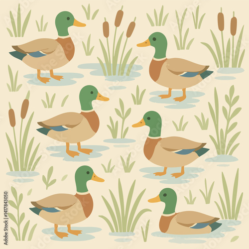 Fototapeta premium Ducks Galore Print Design in Vector