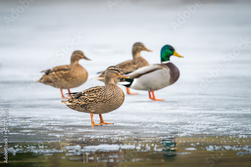 © Marc Andreu, Fototapeta premium ducks on the frozen pond