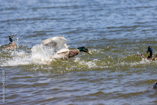 Obraz premium ducks on the lake in sunny weather in the spring season