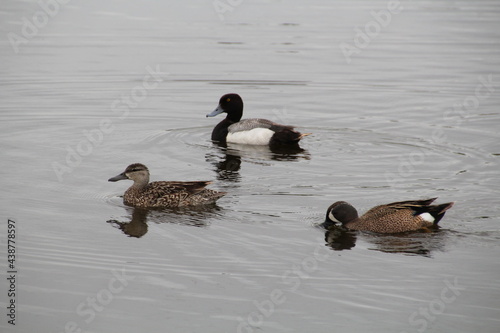 © Michael Mamoon, Obraz premium 3 Ducks On The Lake, Pylypow Wetlands, Edmonton, Alberta
