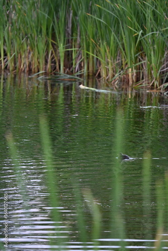 © Alex, Fototapeta premium Ducks swimming on a pond in sunset