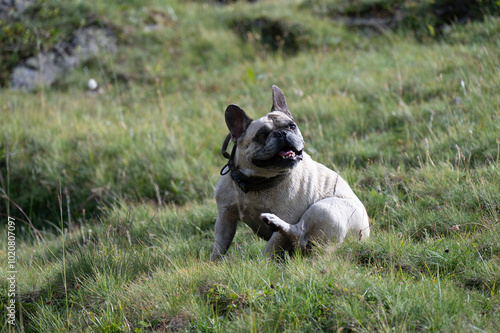 © Oksana Rezzonico, Fototapeta premium Due cani che giocano in montagna, sul Passo della Novena in Svizzera, in mese di settembre.