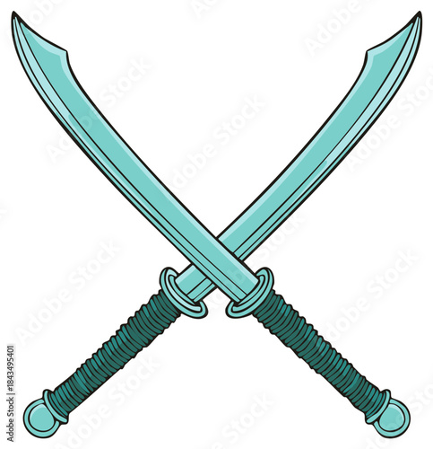 Obraz premium Duel of Crossed Swords Illustration Turquoise Color Cartoon Weaponry Sharp...